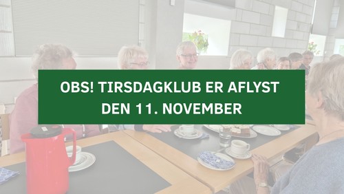 Obs! Tirsdagsklub er desværre aflyst tirsdag den 11. november